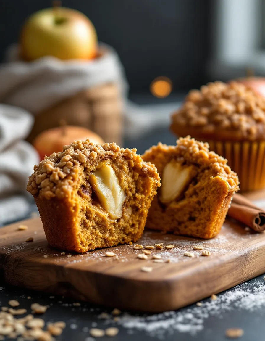 Moist and flavorful muffins combining the sweetness of apples with the warmth of pumpkin, topped with a crunchy streusel.