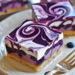 Spoon dollops of blueberry mousse over the cream cheese layer and use a toothpick to create swirls. Decorate with fresh blueberries.