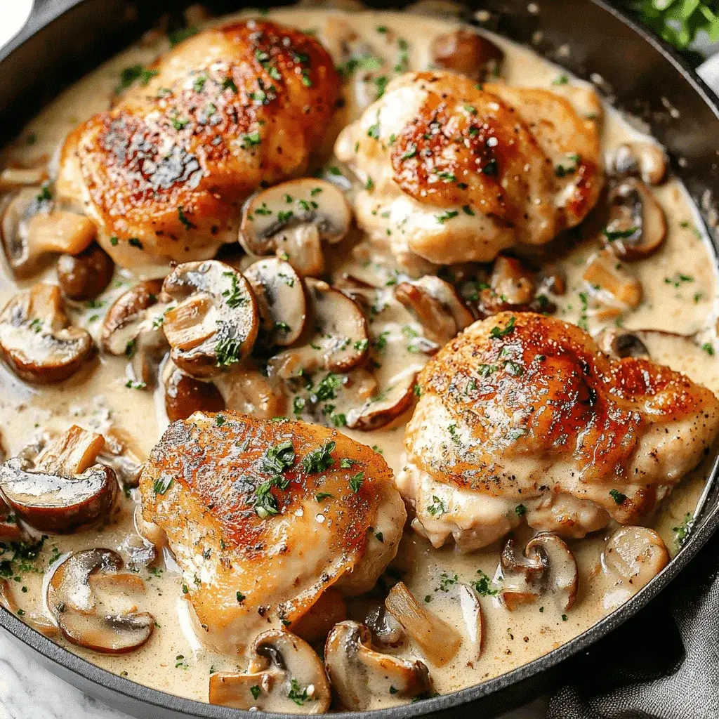 This dish is a symphony of comfort and elegance. Imagine tender, juicy chicken thighs, their skin crisped to golden perfection, nestled in a velvety, umami-rich sauce bursting with earthy mushrooms and aromatic garlic, thyme, and rosemary. It’s a meal that feels decadent yet comes together with stunning simplicity. Whether you’re cooking for a special date night or simply treating your family to something extraordinary, this recipe promises to deliver rich, satisfying flavors that will have everyone asking for seconds. Let’s dive into creating this irresistible masterpiece.
