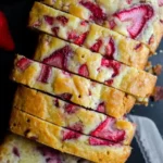 A simple quick bread loaded with strawberries and covered in a lemonade glaze. Perfect for summer!