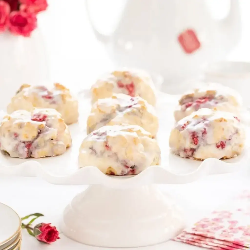 Spray a cookie scooper (see notes above) or large spoon with non-stick cooking spray. Scoop up scones in mounds onto prepared pan. When you scoop, try to get some of the raspberries into each portion. Space the scones at least 2-inches apart to allow for some spreading.