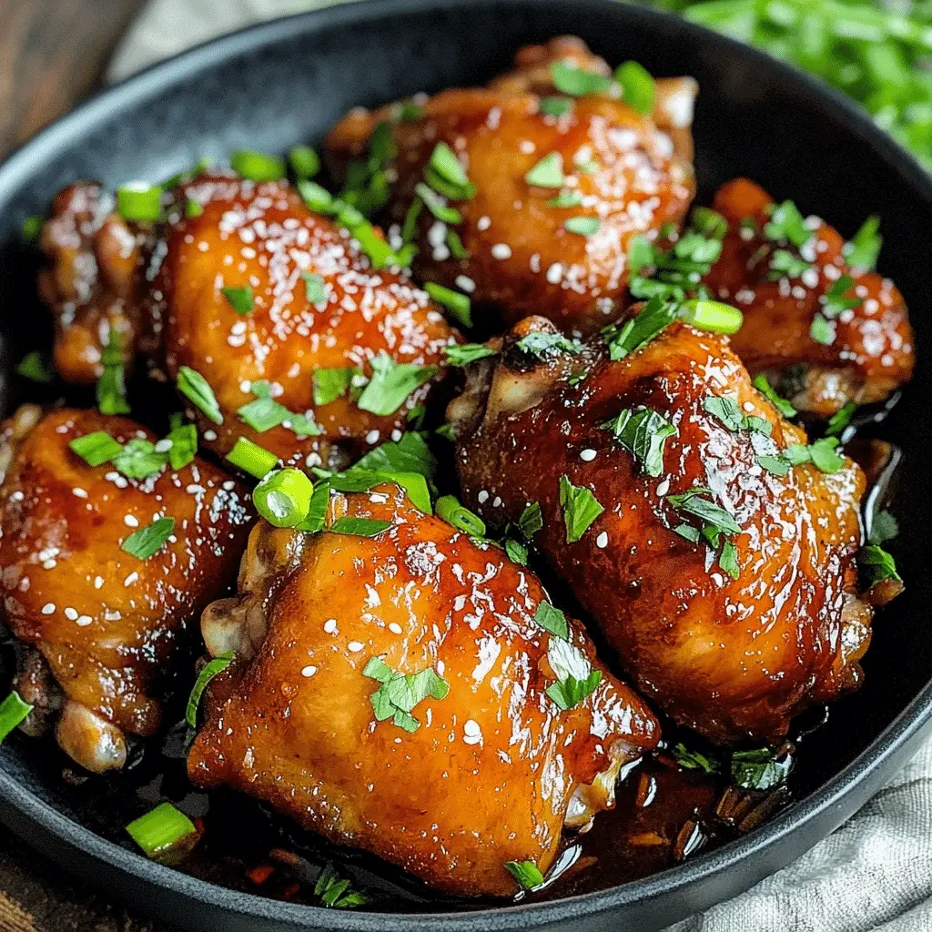Return all the chicken thighs to the skillet, skin-side up, spooning some of the reduced glaze over each piece. Transfer the entire skillet to the preheated oven. Bake for 12-15 minutes, or until the internal temperature of the chicken reaches 165°F (74°C) at the thickest part. Remove from the oven and let the chicken rest in the skillet for 5-7 minutes. This allows the juices to redistribute, ensuring every bite is moist. Garnish generously with sliced green onions and toasted sesame seeds before serving.