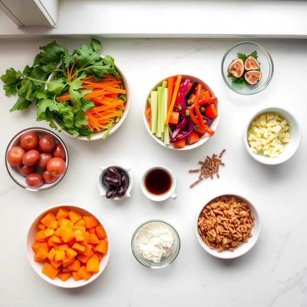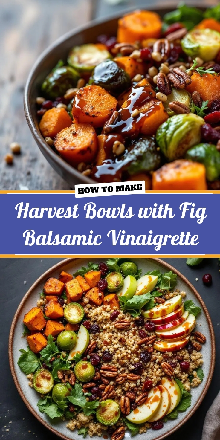 A classic harvest bowl combines roasted autumn vegetables like sweet potatoes and Brussels sprouts with hearty grains such as quinoa or farro, fresh greens like kale or arugula, a protein like grilled chicken or chickpeas, and a creamy cheese like goat cheese or feta. The combination is then brought together with a rich, sweet, and tangy Fig Balsamic Vinaigrette, making it a complete and satisfying meal.