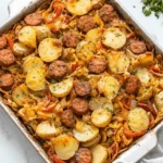 This delicious Potato, Pepper, and Sausage Bake is a perfect one-pan meal featuring crispy roasted potatoes, juicy sausage, and sweet bell peppers. It’s a simple yet satisfying dish that works for breakfast, lunch, or dinner!