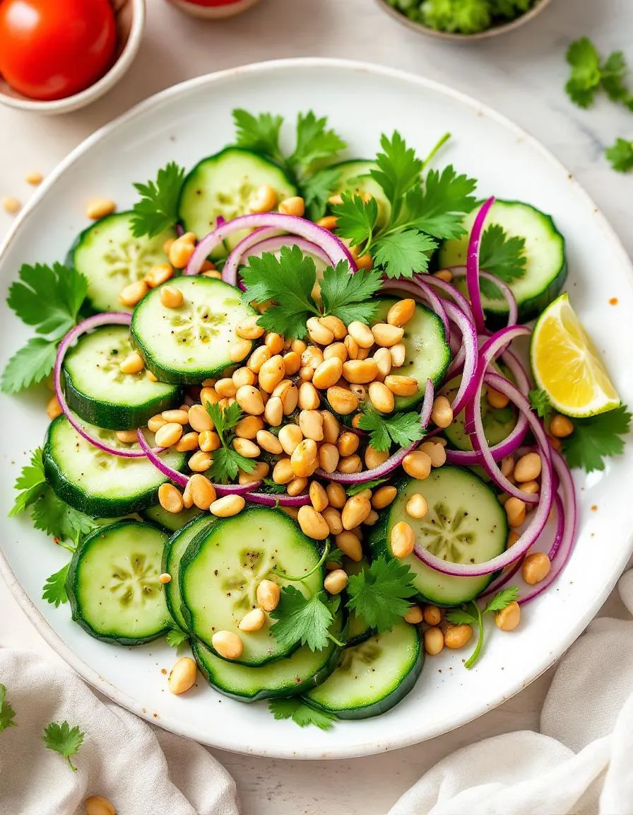 A refreshing and tangy Thai-inspired cucumber salad with crunchy peanuts and a zesty dressing.