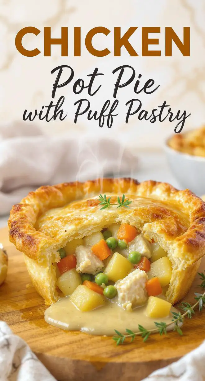 This chicken pot pie with puff pastry recipe offers a simple, delicious way to enjoy homemade comfort food.