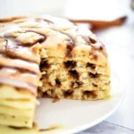 Cinnamon Roll Pancakes will be the star of the show at breakfast! Swirls of cinnamon through out and topped with cream cheese glaze!