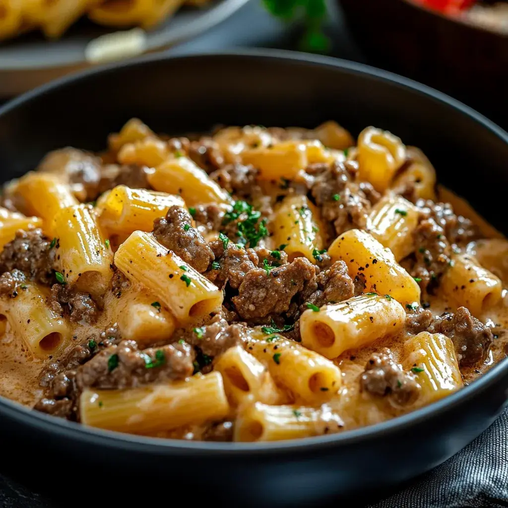 Picture the aroma of sautéed garlic and onions filling your kitchen, blending with the savory sizzle of ground beef to create an irresistible scent that draws everyone to the table. Each bite of this extra creamy beef pasta delivers a harmonious mix of textures: tender, juicy beef contrasting with al dente pasta, all enveloped in a luxurious, velvety sauce made from heavy cream and Parmesan. The flavors are a delightful symphony—earthy Italian seasoning, sharp garlic, and a hint of sweetness from the onions—resulting in a dish that’s not just filling but also indulgent, with every forkful leaving you craving just one more.