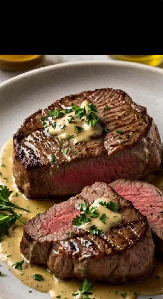 With just the right blend of spices and ingredients, this filet mignon is not only visually stunning but also enticing to the palate. Imagine slicing into the perfectly cooked meat, releasing its savory juices, and drenching it in a creamy sauce that enhances each bite.