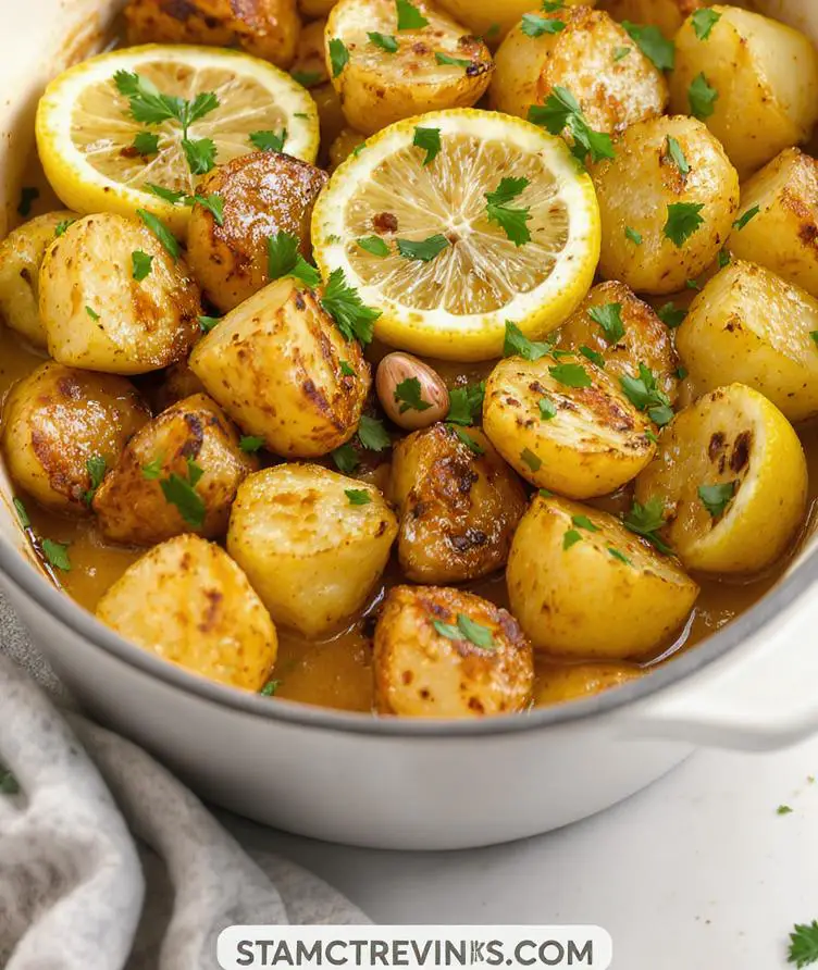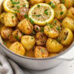 This roasted lemon potatoes recipe features tender Yukon Gold potatoes bathed in a lively marinade of fresh lemon juice, garlic, and Mediterranean herbs, resulting in a dish that’s crispy on the outside and fluffy inside.