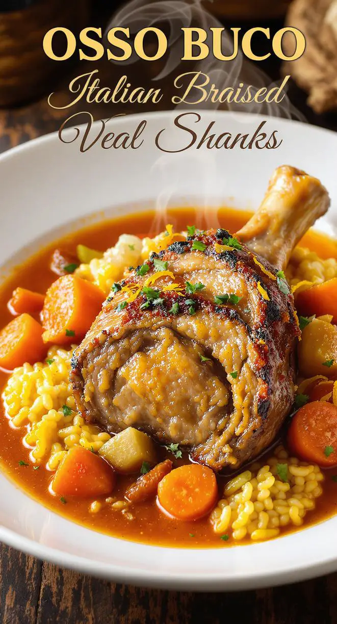 This braised osso buco recipe features thick cuts of veal simmered slowly in a savory blend of white wine, broth, and fresh vegetables, resulting in meat so tender it falls effortlessly off the bone.