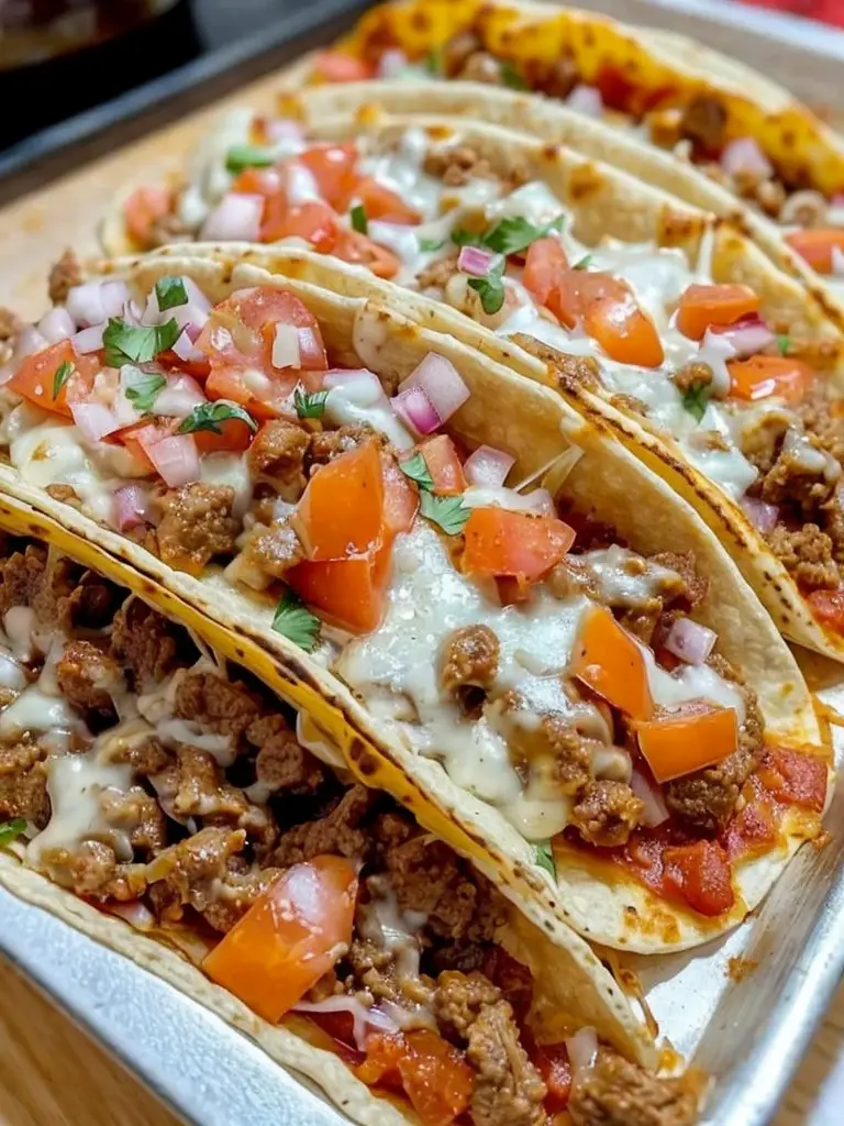 Not only are these tacos easy to make, but they also offer a burst of flavors and textures that will leave your taste buds dancing. Imagine biting into a taco filled to the brim with perfectly seasoned meat, the salty crunch of bacon, and the comforting warmth of melted cheese. This recipe is perfect for gatherings or casual dinners, giving everyone the chance to enjoy an extraordinary fusion dish that feels both festive and comforting.