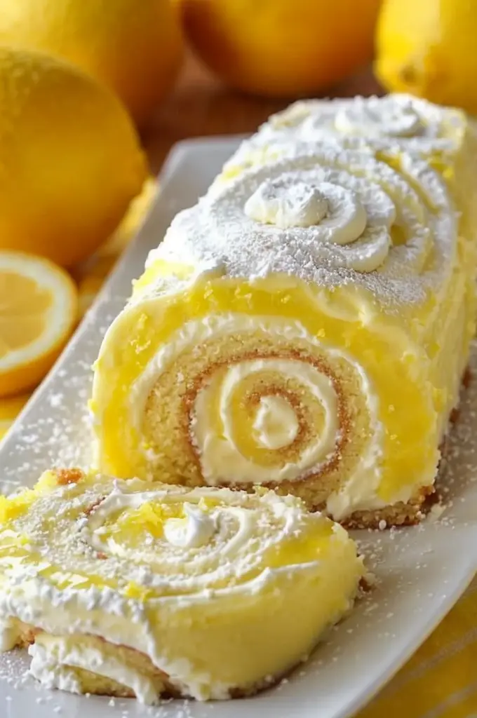 - Visual Appeal: The bright yellow hue of the lemon cream is inviting, while the rolled pattern provides an elegant presentation.