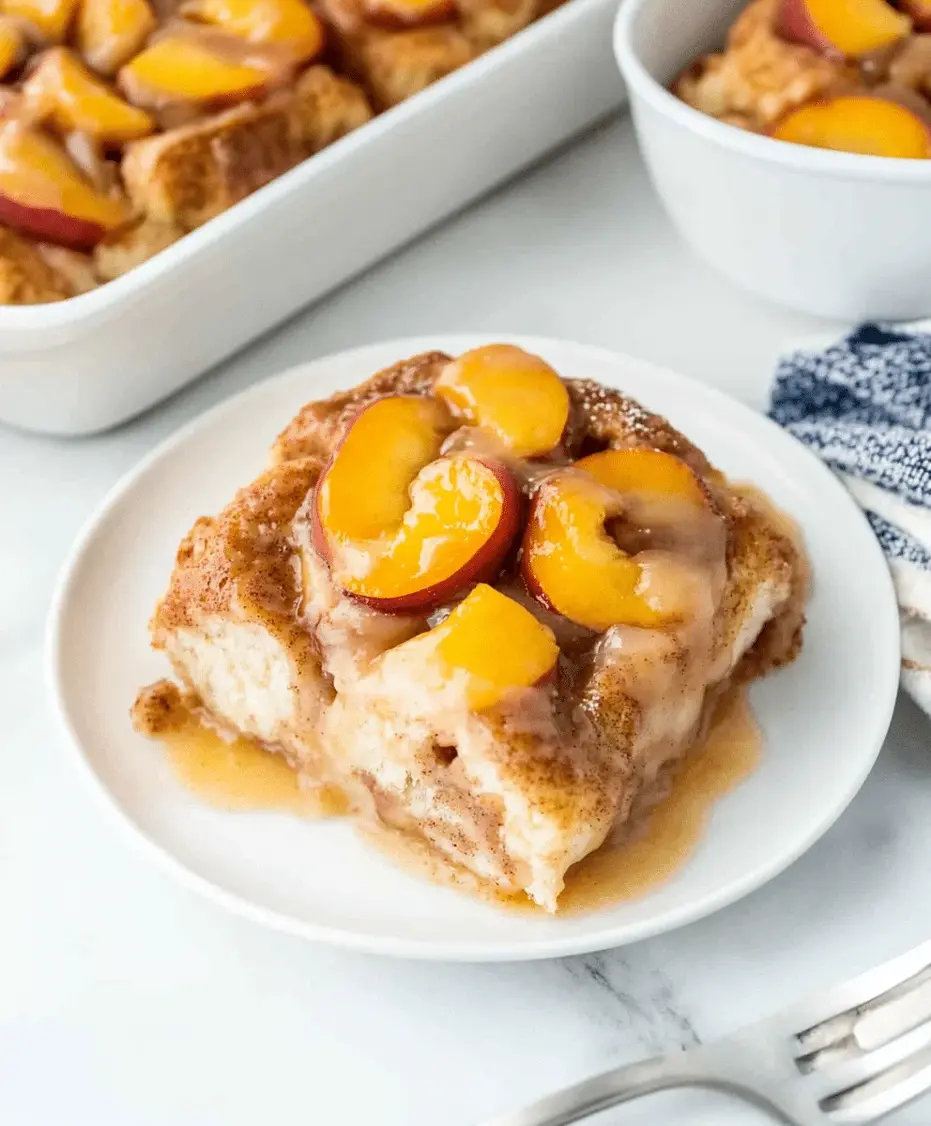 - Sugar Reduction: Reduce the brown sugar in the filling by ¼ cup and use a monk fruit/allulose blend powdered sugar for the glaze. The natural sweetness of the peaches will shine through.