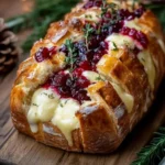 A rustic sourdough loaf transformed into a pull-apart delight, stuffed with creamy Brie cheese and tart cranberry sauce, then brushed with garlic herb butter and baked until golden and melty.