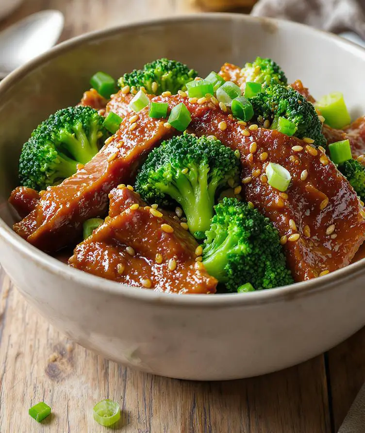 Imagine thinly sliced flank steak that becomes melt-in-your-mouth tender after slow cooking, paired with fresh broccoli florets that retain their crisp-tender bite.