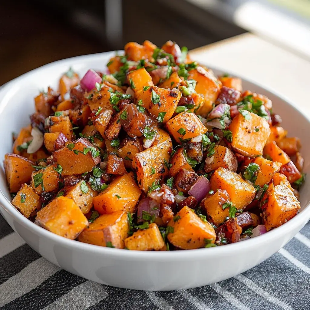 For an impressive presentation of your Sweet Potato Salad, arrange it in a large, shallow bowl to showcase the colorful mix of roasted sweet potatoes, red bell peppers, and parsley. Garnish with a sprinkle of fresh herbs or a light dusting of paprika for added visual appeal and a subtle smokiness. This nutrient-packed dish pairs wonderfully with grilled proteins like chicken or fish, balancing their richness with its fresh, tangy notes, or serve it alongside quinoa for a complete vegetarian meal. Experiment with seasonal variations, such as adding avocado for creaminess, to make it the centerpiece of your table.